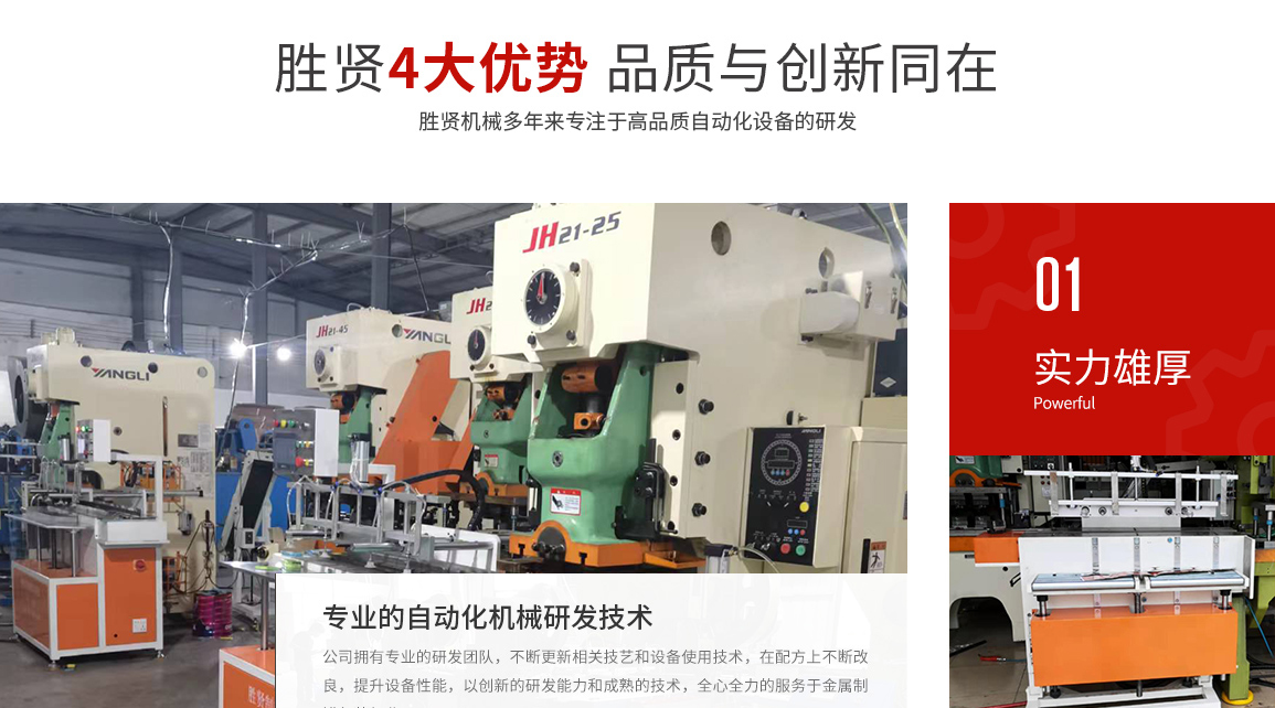東莞市勝賢機械設備有限公司,是一家專業(yè)從事金屬制罐包裝行業(yè)的整套自動化設備和模具開發(fā)、制造與銷售的公司,擁有成熟的技術和創(chuàng)新開發(fā)能力。我們擁有有一批多年從事設計、研究開發(fā)的工程師,和設備、模具制作的技術人才。不斷推進制罐行業(yè)向高效、環(huán)保、節(jié)能、操作簡易化的方向發(fā)展。